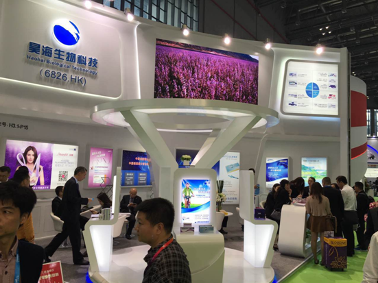 略带弧形的整体设计、360度圆形产品展台布局,遍布全场的医用可吸收生物材料产品,加上热情介绍讲解的工作人员,让观众对昊海生物科技的产品及其研发实力有了更充分的了解。