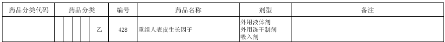 圖為:“重組人表皮生長因數”醫保目錄分類