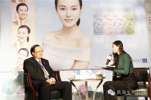 Picture : Mrs Wei Xin, VGM & Head of Plastic Surgery Business Unit of Haohai Biological Technology accepts an interview with media