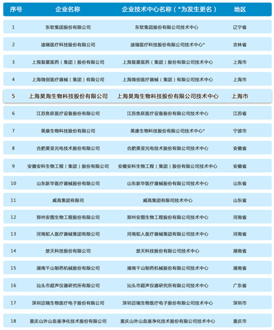 入选“国家企业技术中心”之医疗器械企业名单