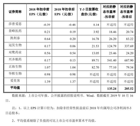 昊海生科所在行业为医药制造业(C27)。根据初步询价结果,并综合考虑昊海生科所处行业、市场情况、可比公司估值水平、募集资金需求等因素,协商确定本次发行价格为89.23元/股,对应市盈率42.20倍(每股收益按照2018年度扣非后归母净利润除以本次发行后总股本计算),低于同行业可比公司平均静态市盈率。